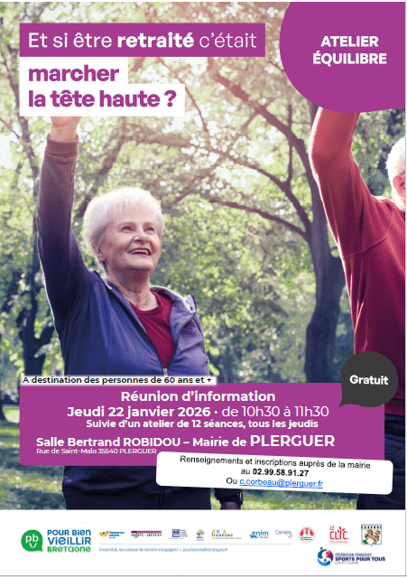 Plerguer- Salle bertrand robidouChaque année, près de 2 millions de personnes de plus de 60 ans chutent en France, entraînant des conséquences graves sur la santé et l’autonomie. En Bretagne, ce phénomène est accentué par le vieillissement de la population. Pour y faire face, la Fédération Française Sports pour Tous, dans le cadre du programme Pour bien vieillir Bretagne, propose un Programme de prévention des chutes en partenariat avec le CLIC de la Côte d'emeraude et la ville de Plerguer. Une réunion d’information suivi d' ateliers pratiques sont proposés pour réduire les risques de chute, améliorer l’équilibre, renforcer l’autonomie et sensibiliser aux bonnes pratiques de santé et d’aménagement du domicile. 12 séances les jeudis matins à partir de Février.